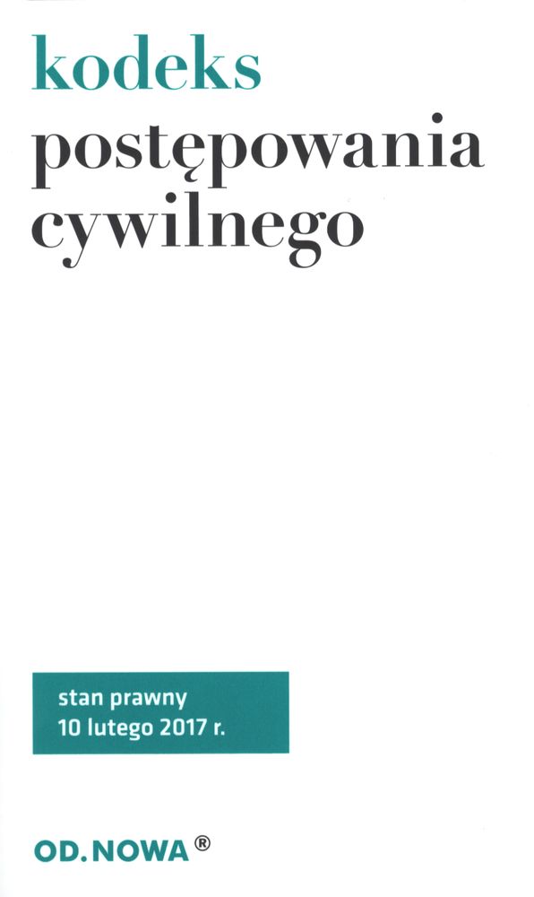Najnowsza aktualizacja kodeksu postępowania cywilnego. Publikacja zawiera tekst jednolity kodeksu wraz z przepisami wprowadzającymi. Zaletą książki jest jej praktyczny, poręczny format, przejrzysty układ graficzny i niska cena. Łatwą orientację w materiale umożliwia obszerny skorowidz. Zmiany oczekujące na wejście w życie umieszczono w ramkach. Stan prawny: luty 2017r.