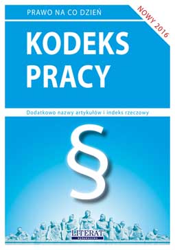 Najnowszy kodeks – wygodny kieszonkowy format, artykuły opatrzone nazwami z wyjaśnieniem ich sensu, indeks rzeczowy ułatwiający wyszukiwanie zagadnień. Stan prawny na dzień 11 stycznia 2016 roku. Zostały uwzględnione zmiany wprowadzone ustawami: z dnia 24 lipca 2015 r. o Radzie Dialogu Społecznego i innych instytucjach dialogu społecznego (Dz.U. z 2015 r., Nr 166, poz. 1240), z dnia 10 lipca 2015 r. o zmianie ustawy – Prawo o ustroju sądów powszechnych oraz niektórych innych ustaw (Dz.U. z 2015 r., Nr 164, poz. 1224), z dnia 24 lipca 2015 r. o zmianie ustawy – Kodeks pracy oraz niektórych innych ustaw (Dz.U. z 2015 r., Nr 168, poz. 1268), a także zmiany wchodzące w życie z dniem 22 lutego 2016 r. (Dz.U. z 2015 r., Nr 162, poz. 1220), 1 marca 2016 r. (Dz.U. z 2015 r., Nr 168, poz. 1268) oraz 1 września 2018 r. (Dz.U. z 2009 r., Nr. 56, poz. 458).