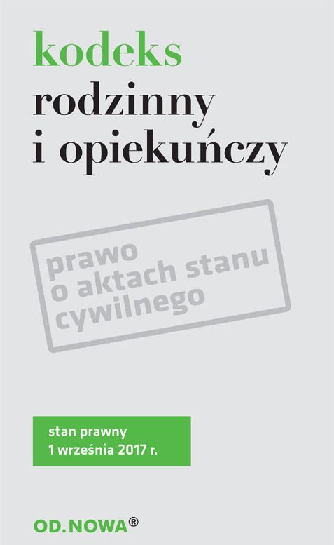 Publikacja zawiera tekst jednolity ustawy – Kodeks rodzinny i opiekuńczy wraz z przepisami wprowadzającymi, a także ustawę – Prawo o aktach stanu cywilnego. Zaletą książki jest jej praktyczny, poręczny format i przejrzysty układ graficzny. Łatwą orientację w materiale umożliwia obszerny skorowidz. Stan prawny – 1 września 2017 r.
