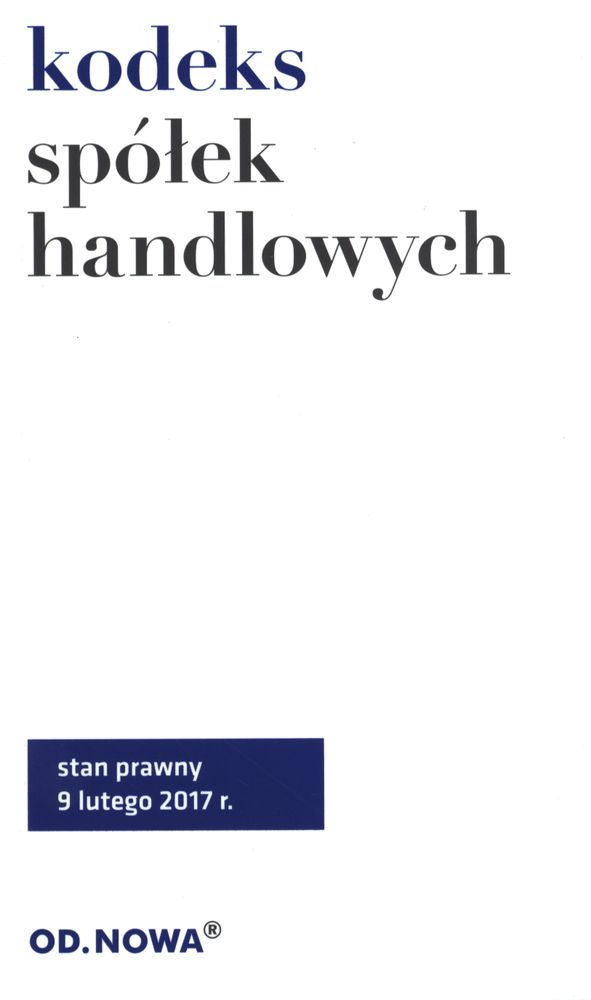 Najnowsza aktualizacja kodeksu spółek handlowych. Publikacja zawiera tekst jednolity kodeksu. Zaletą książki jest jej praktyczny, poręczny format, przejrzysty układ graficzny i niska cena. Łatwą orientację w materiale umożliwia obszerny skorowidz. Zmiany oczekujące na wejście w życie umieszczono w ramkach. Stan prawny: styczeń 2017r.