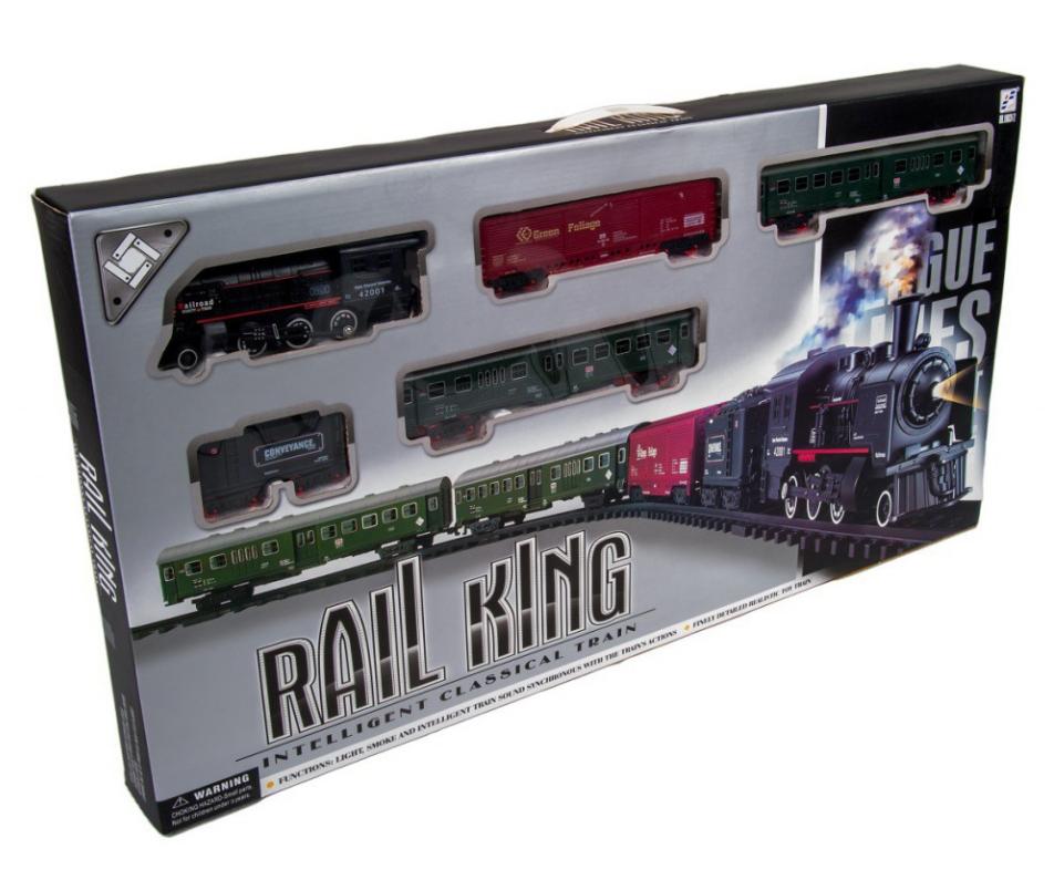 Kolejka elektryczna rail king średnia osobowa z funkcją dymu, światła i dźwięku. Zasilanie: 4xAA (brak w zestawie).