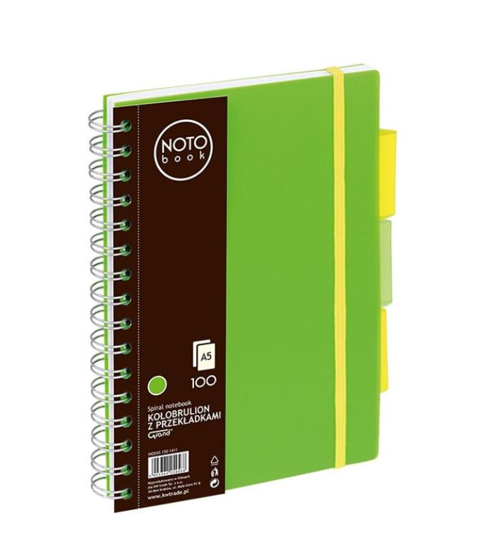 podwójna metalowa spirala liniatura: kratka 100 kartek 3 przekładki format A5 gramatura 80 g/m2 x
