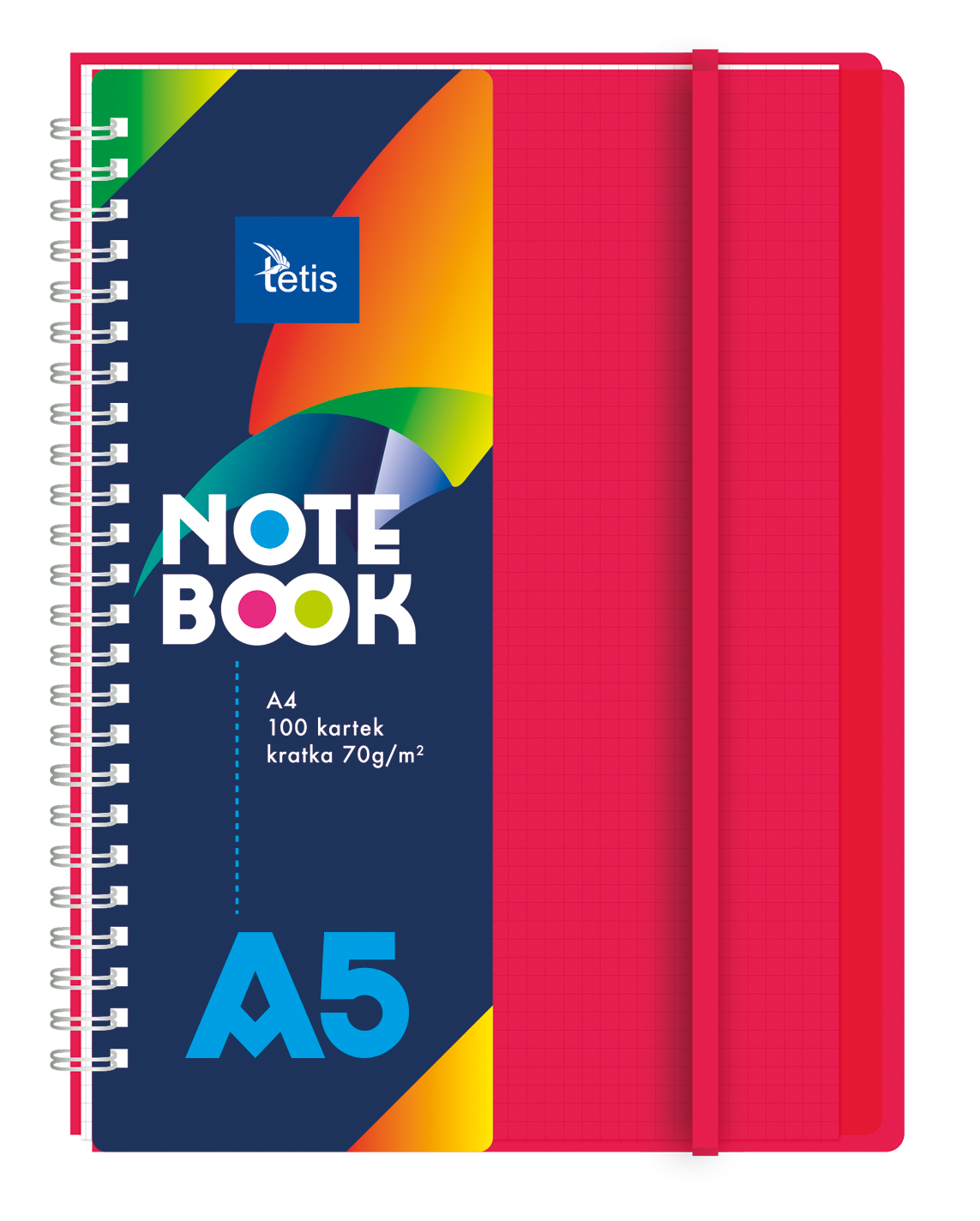 Kołonotatnik A5/100K kratka PP czerwony