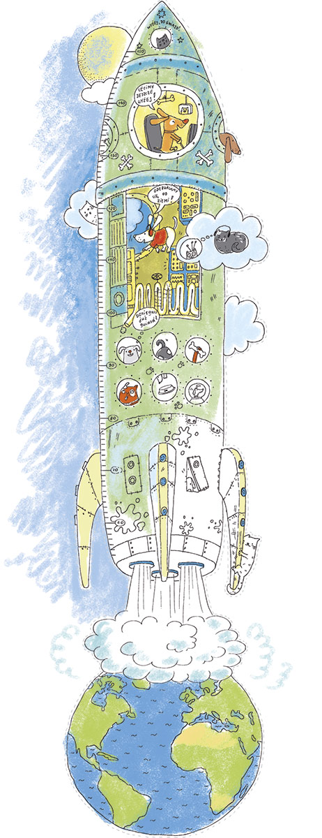 Koloromiarka. Miarka wzrostu do kolorowania Psia Rakieta