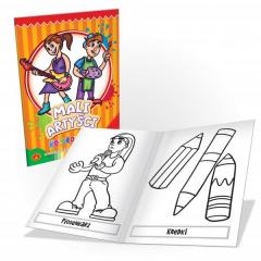 Kolorowanki to seria zeszytów podejmujących różne tematy do kolorowania dla dzieci. Każda ilustracja jest podpisana, co pomaga dzieciom uczyć się poprzez zabawę. Przyjemne i zabawne motywy sprawiają dzieciom radość.Mali Artyści to książeczka przedstawiająca małych artystów i ich artybuty.