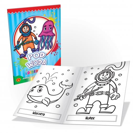 Kolorowanki to seria zeszytów podejmujących różne tematy do kolorowania dla dzieci. Każda ilustracja jest podpisana, co pomaga dzieciom uczyć się poprzez zabawę. Przyjemne i zabawne motywy sprawiają dzieciom radość.Pod Wodą to książeczka przedstawiająca co możemy spotkać pod wodą.