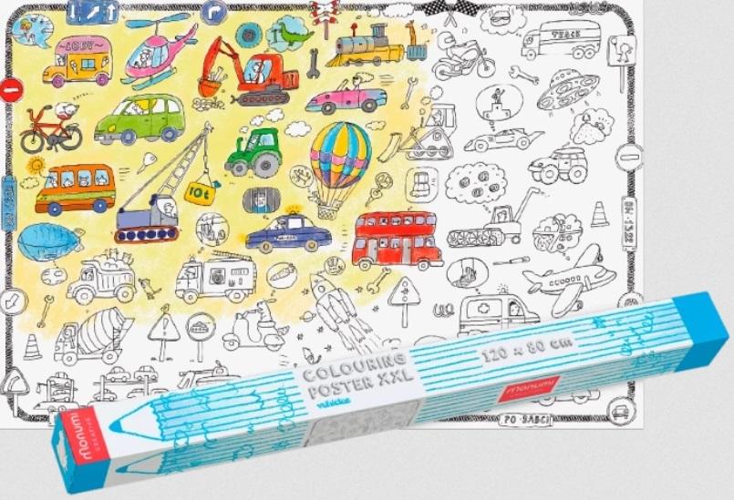 Opis produktuZasady bezpieczeństwaKolorowanka w rozmiarze 120cm x 80cm. Ogromna powierzchnia do kolorowania kredkami, flamastrami i farbami. Wzmocniony spód arkusza zabezpiecza przed przesiąkaniem farb. Kolorowanka wykonana jest z grubego kartonu, który można bez końca rozkładać i zwijać! x