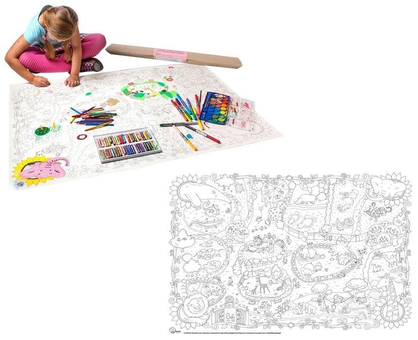 Opis produktuZasady bezpieczeństwaKolorowanka w rozmiarze 120cm x 80cm. Ogromna powierzchnia do kolorowania kredkami, flamastrami i farbami. Wzmocniony spód arkusza zabezpiecza przed przesiąkaniem farb. Kolorowanka wykonana jest z grubego kartonu, który można bez końca rozkładać i zwijać! x