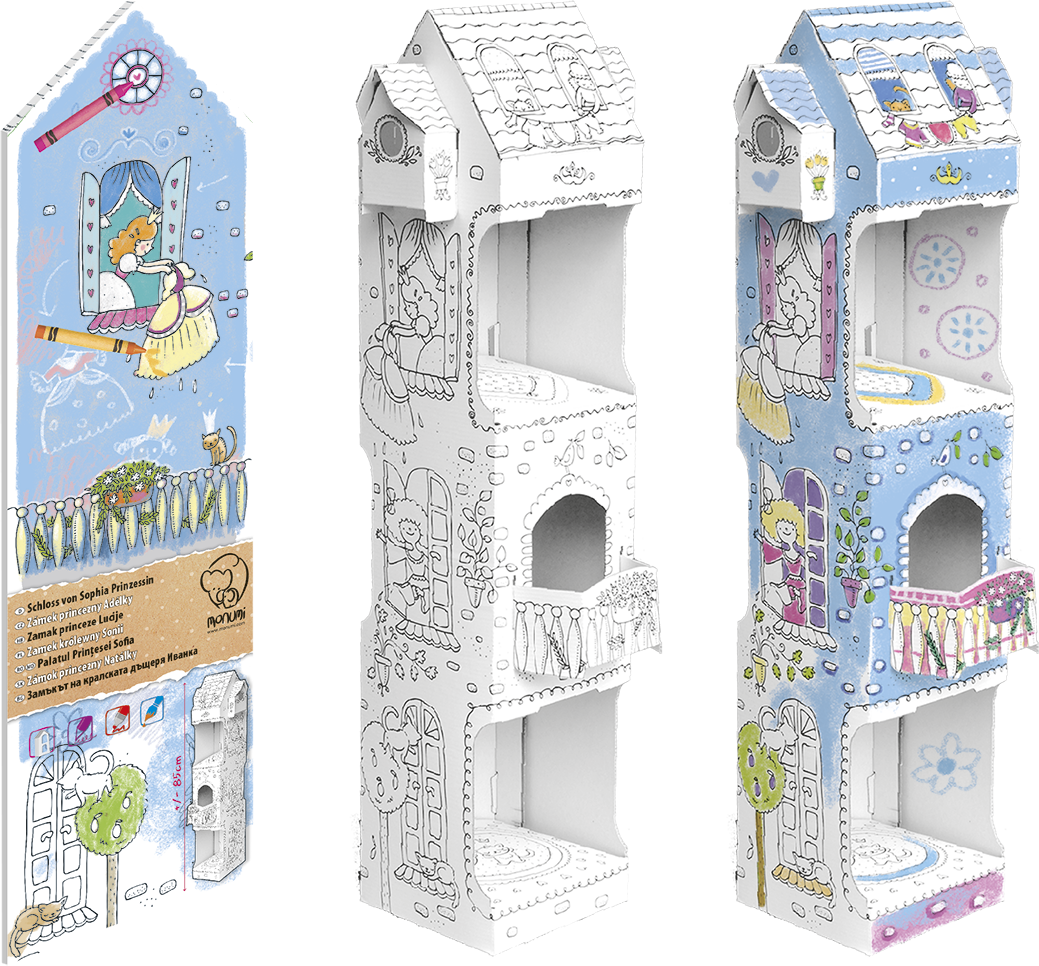 Rozkładany regalik do kolorowania; wykonany z kartonu; wzór: Kamieniczka Królewny Sonii; przeznaczony dla dzieci w wieku 5-8 lat; wymiary produktu po złożeniu 83x18x19 cm; wymiary opakowania 85x20x7 cm. Opis: rozkładany regalik do kolorowania, wykonany z kartonu, wzór: Kamieniczka Królewny Sonii przeznaczony dla dzieci w wieku 5-8 lat, wymiary produktu po złożeniu 83x18x19 cm, wymiary opakowania 85x20x7 cm.