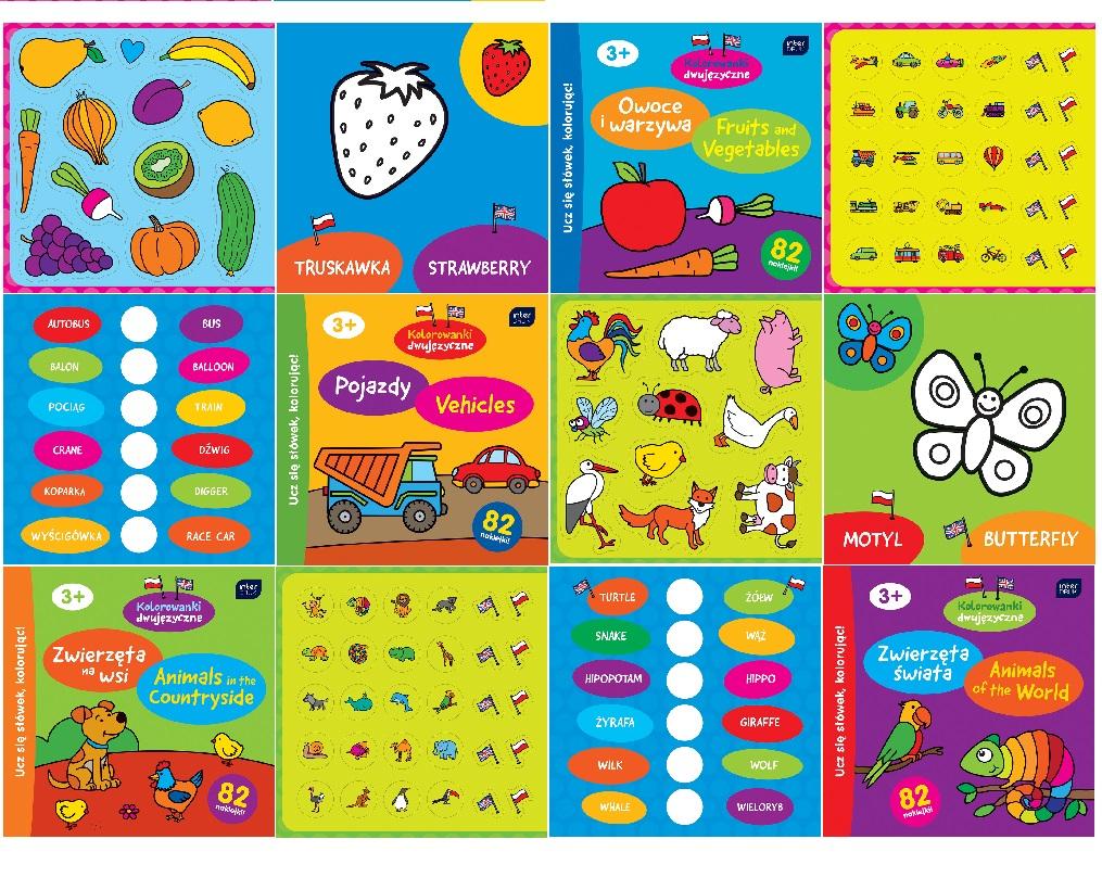 Kolorowanki o wymiarze 21x21 cm, mix wzorów, Owoce i warzywa/ Zwierzęta na wsi/ Zwierzęta świata/Pojazdy