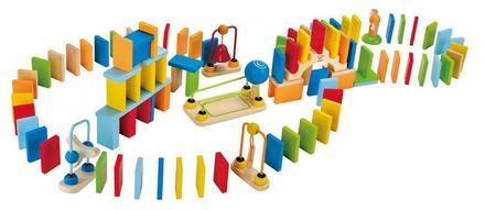 Zbuduj kolorowy pochód ze 100 klockami. Dodaj most, tory używając różnych sztuczek. Pchnij jeden klocek i obserwuj jak reszta z nich przewraca się jeden po drugim.