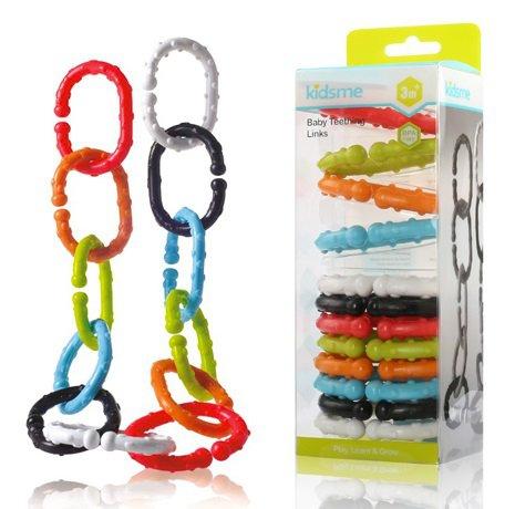 12 kolorowych pierścieni w 6 kolorach, które można ze sobą łączyć w dowolnej kolejności. Każdy z elementów posiada wypustki, dzięki czemu wspaniale sprawdzi się w roli gryzaczka. Linkę można przymocować do dziecięcego łóżeczka czy wózka samodzielnie albo zawiesić na niej ulubioną zabawkę Dzidziusia. Linki uczą rozpoznawania kolorów oraz rozwijają zdolności motoryczne Maluszka.