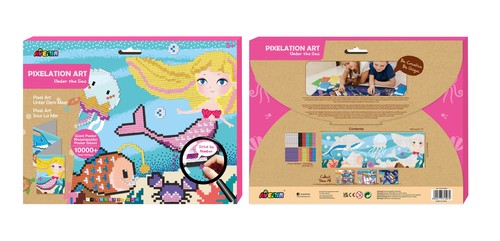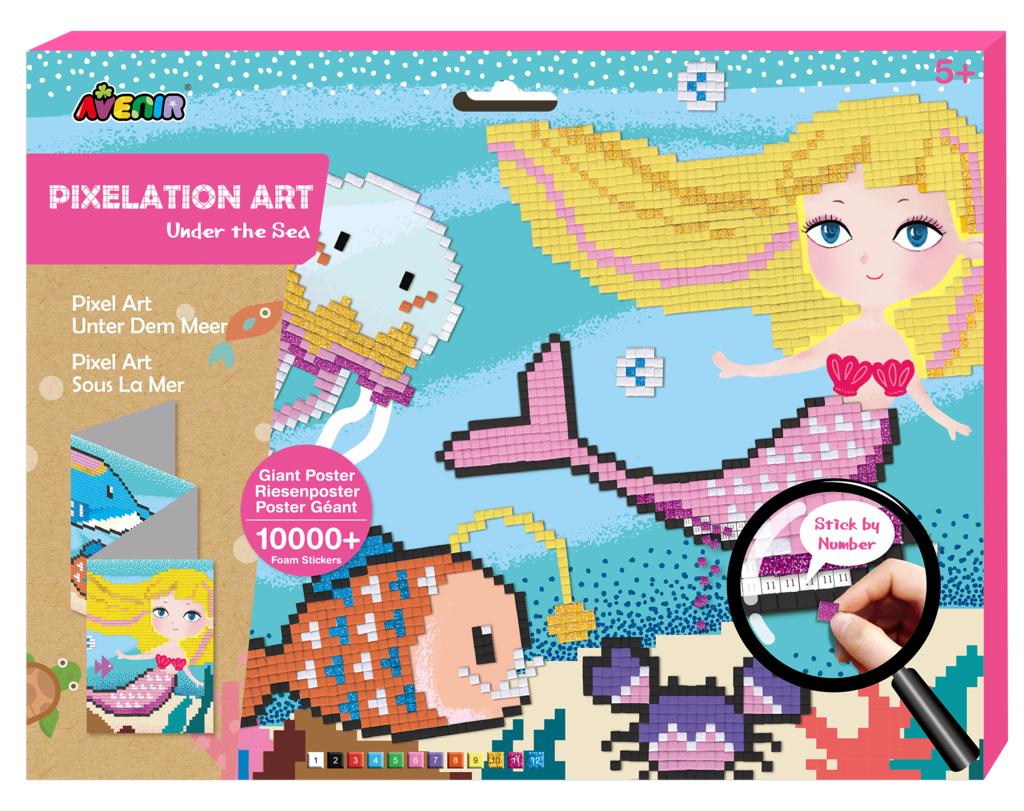 Piksele to nowy wymiar zabawy z Avenir. Do dyspozycji dziecka jest niesamowity gigantyczny plakat wydrukowany w żywych kolorach i z interesującą grafiką bajkowego, podwodnego świata.