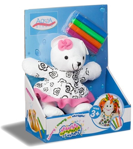 Zestaw składa się z maskotki oraz 4 markerów do kolorowania (niebieski, zielony, pomarańczowy, różowy). Zabawkę można kolorować, prać i zmywać na okrągło. Niesamowita zabawa dla każdego dziecka.