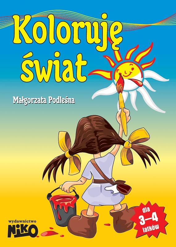 Książka ""Koloruję świat"" adresowana jest do młodszych przedszkolaków. Tytuł książki jednoznacznie wskazuje, że dominującą aktywnością dzieci będzie kolorowanie - czyli rodzaj ćwiczeń grafomotorycznych, które usprawniają rękę piszącą.Czynność ta łączy się z innymi wartościowymi ćwiczeniami edukacyjnymi typu: nazywanie roślin i zwierząt oraz środowisk przyrodniczych bliskich dziecku, nazywanie zawodów, środków lokomocji, kolorów i kształtów, ogólna orientacja w położeniu przedmiotów w przestrzeni (blisko, daleko, wysoko, nisko, nad, pod), zauważanie różnic i podobieństw między dwoma obrazkami, ilościowe ujmowanie zbiorów i ich porównywanie (więcej, mniej, tyle samo), rozróżnianie wielkości przedmiotów (małe, duże), ujmowanie zależności przyczynowo-skutkowych, kolejności zdarzeń, porównywanie i wykrywanie różnic między przedmiotami itp.Gorąco polecam książkę, warto bowiem pamiętać, że nic nie zastąpi dziecku - szczególnie przedszkolakowi - kontaktu z wartościową książką edukacyjną.
