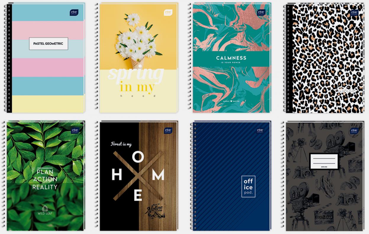 Format: A4. Liczba kartek: 100. Zadruk w linię. Ostre rogi. Pojedyncza spirala wkręcana. Otwory do segregatora. Perforacja wzdłuż grzbietu, ułatwiająca wyrywanie kartek. Spirala po długim boku.
