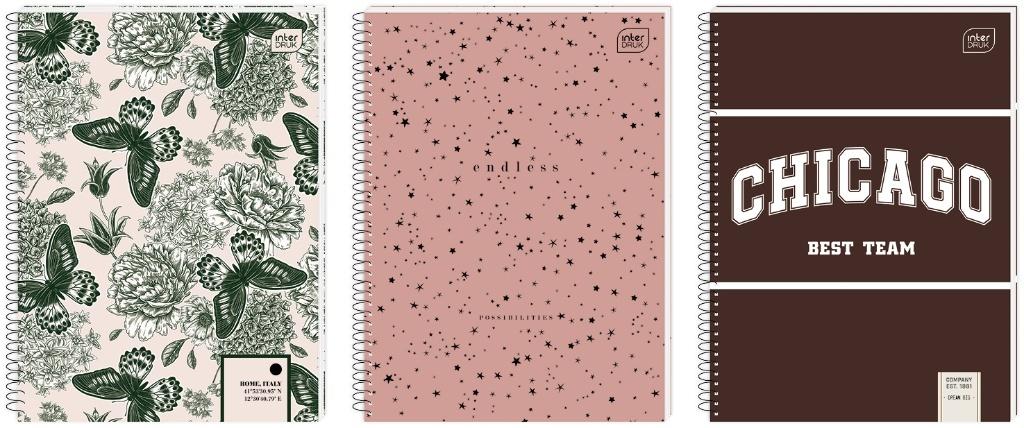 Kołozeszyt A5 kratka, 120 stron, mix wzorów. 5 sztuk w opakowaniu zbiorczym. Producent Interdruk.