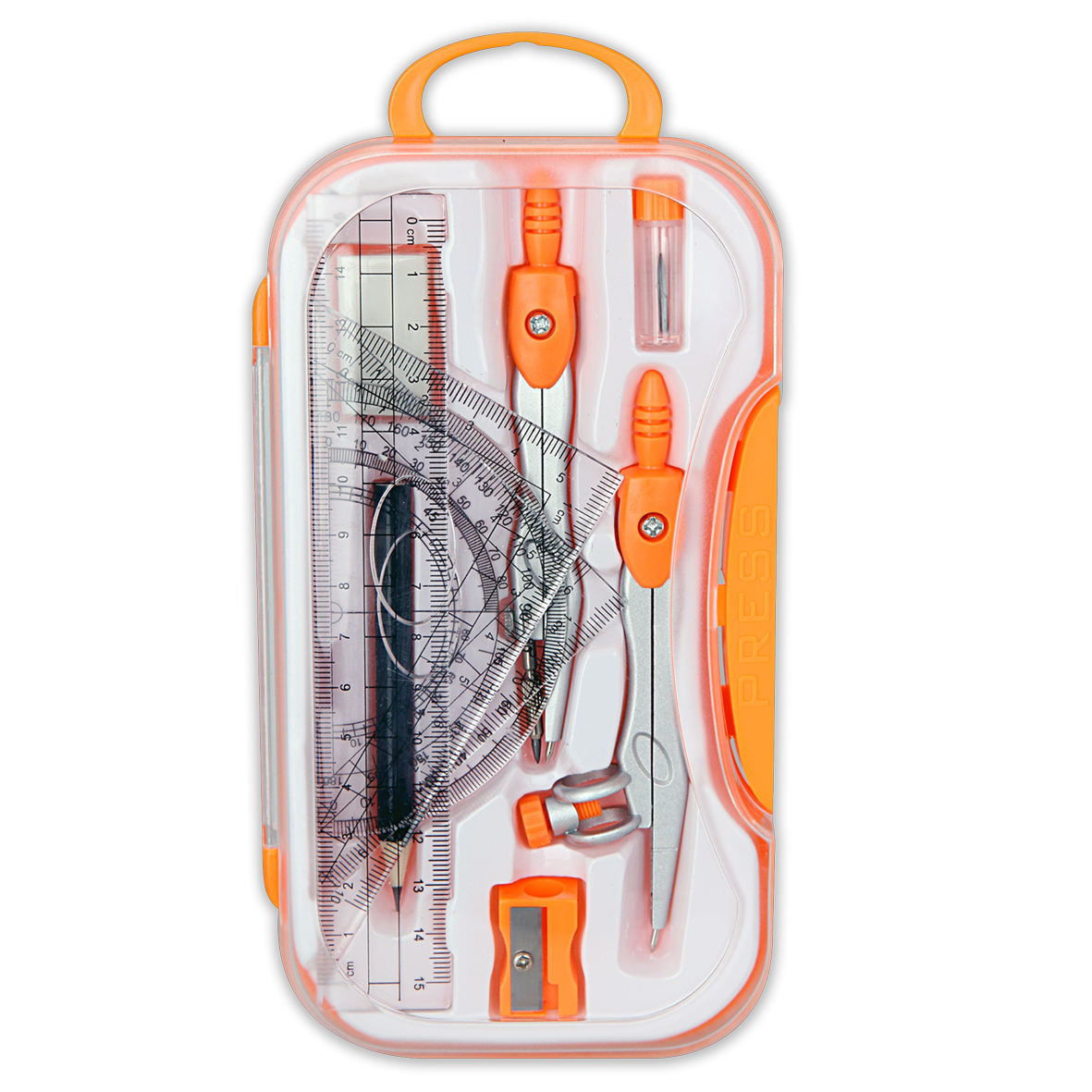 Opis produktuZasady bezpieczeństwaZestaw składający się z dwóch cyrkli: metalowego z grafitem 2 mm oraz z ołówkiem, kompletu geometrycznego, temprówki i pojemnika na zapasowe grafity. Całość w kolorowym etui z zawieszką. x