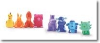Zestaw 8 kolorowych gumowych zwierzaków do zabaw tematycznych.