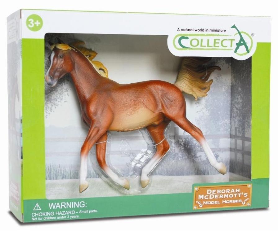 Koń arabski stallion chestnut to figurka kolekcjonerska firmy Collecta. Produkty tej firmy cechuje wysoka jakość wykonania oraz wiernie oddany kształt oraz kolor zwierzęcia. Cała kolekcja obejmuje przeszło 553 gatunków, podzielonych na 9 kategorii i 4 grupy cenowe: S-small; M-medium; L-large; XL- X large; oraz figurki deluxe i akcesoria.