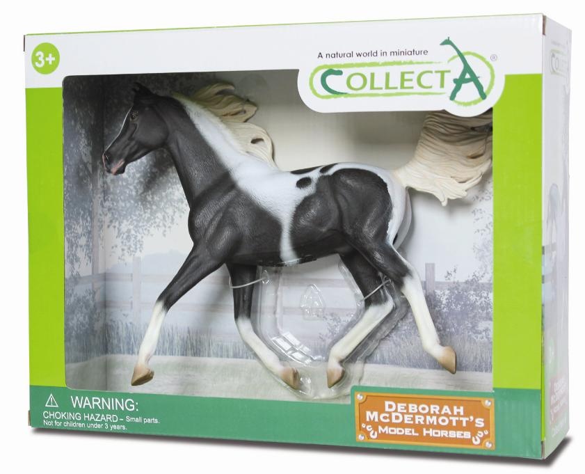 Pół arabski ogier pinto to figurka kolekcjonerska firmy Collecta. Produkty tej firmy cechuje wysoka jakość wykonania oraz wiernie oddany kształt oraz kolor zwierzęcia. Cała kolekcja obejmuje przeszło 553 gatunków, podzielonych na 9 kategorii i 4 grupy cenowe: S-small; M-medium; L-large; XL- X large; oraz figurki deluxe i akcesoria.