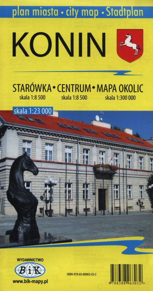 Szczegółowy plan Konina uzupełniony spisem ulic; lokalizacja stacji benzynowych i parkingów, zabytków, urzędów i instytucji oraz bazy turystycznej, aktualna sieć komunikacji miejskiej.
