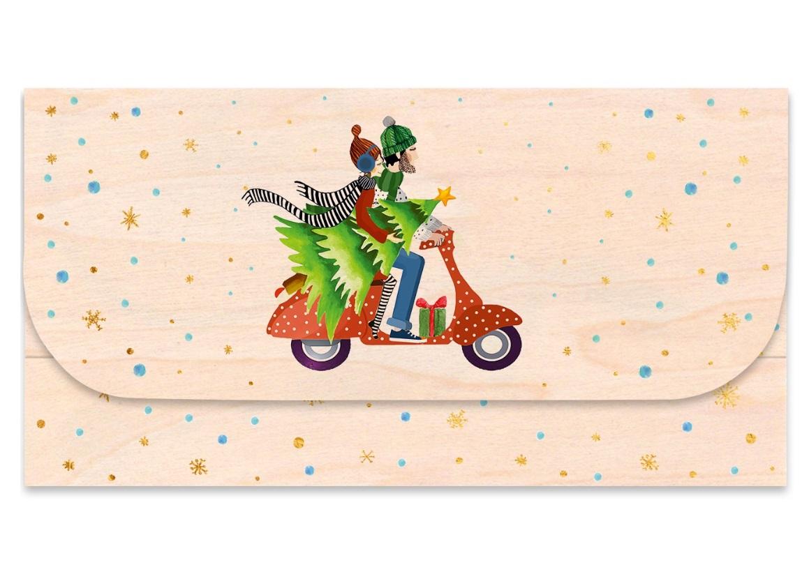 Koperta upominkowa drewniana Święta Skuter