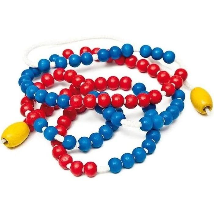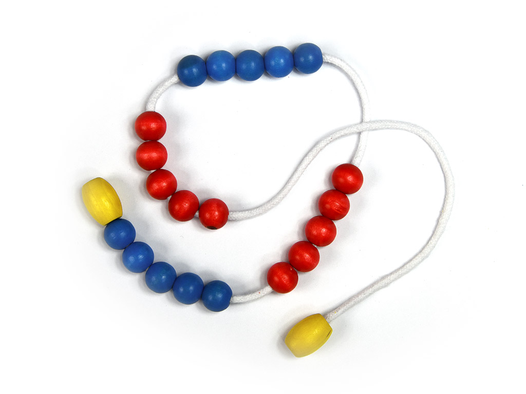 Drewniane korale w kolorze czerwonym i niebieskim, stanowią sprawdzony i praktyczny system nauki liczenia. Można ustawiać je na sznurku w dowolnej pozycji tak, by nie przesuwały się po nim samoistnie, ponieważ nawleczone są na grubym, porowatym sznurku.