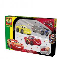 Zestaw Disney CARS 3 zawiera 1300 szt. kolorowych koralików, specjalną podstawkę do układania wzorów z koralików. Produkt nie zawiera w składzie PVC. Zabawa z koralikami to nowe spojrzenie na mozaikę. Dziecko na specjalnych szablonach układa kolorowe koraliki, następnie całość z pomocą osoby dorosłej należy zaprasować przez pergamin, zdjąć z podstawki, pozostawić na około 2 min przyciśnięte czymś ciężkim (np. książka) i mozaika gotowa. Utrwalonymi beadsami można udekorować pokój lub tworzyć obrazy. Zabawa dla dzieci od 5 roku. Wyprodukowano w Holandii.