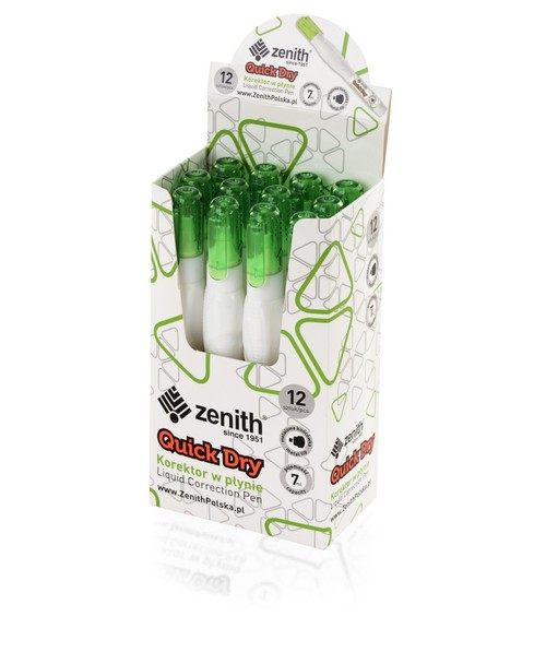 Opis produktuZasady bezpieczeństwaKorektor w płynie 7m Quick Dry ZENITH Opakowanie zbiorcze zawiera 12 sztuk. x
