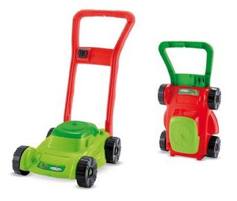 Kolorowa kosiarka na kółkach.