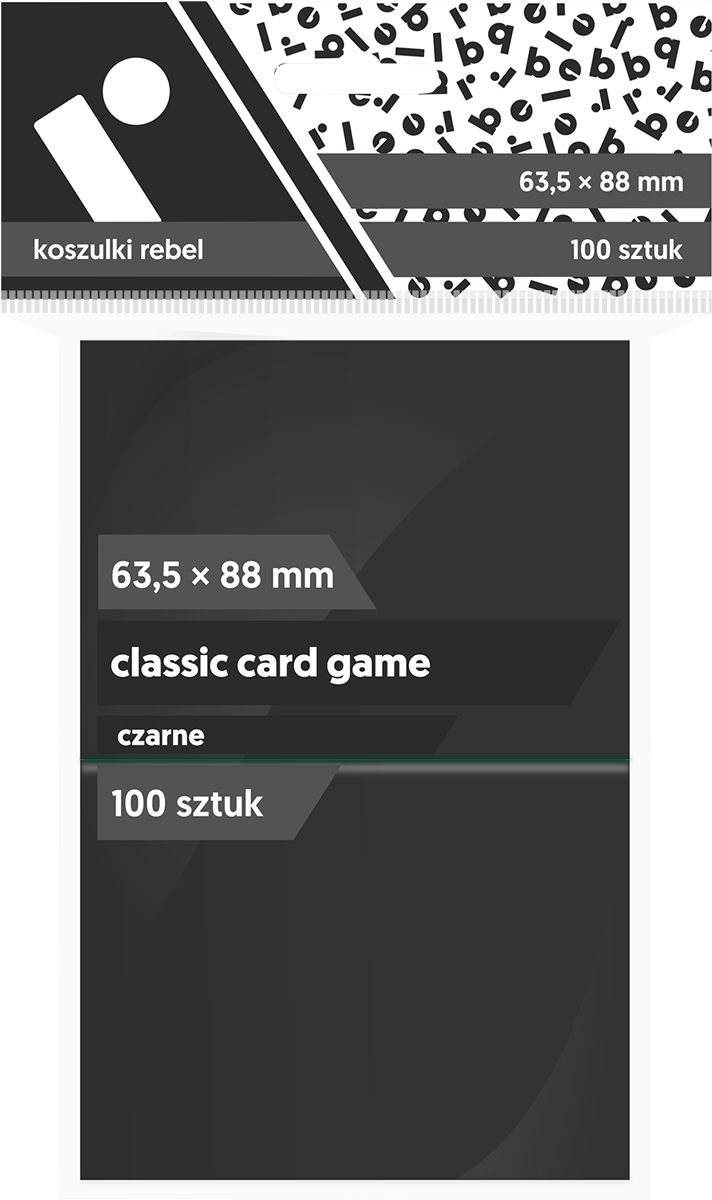 Opakowanie zawiera 100 czarnych koszulek na karty o rozmiarze 63,5x88 mm, o grubości 50 mikronów. Wychodząc ku oczekiwaniom graczy prezentujemy koszulki na karty marki Rebel. Cechuje je: - wysoka przejrzystość i wytrzymałość, - bezbarwność z jednej strony (brak domieszek kolorystycznych, dzięki czemu nie zmieniają wyglądu grafik na kartach) i intensywna czarna barwa z drugiej, pozwalająca spersonalizować każdą talię i pięknie ją ozdobić - wykonane z polipropylenu, bez domieszek polichlorku winylu (lepsza odporność na promieniowanie słoneczne i zwiększona elastyczność), - brak absorpcji wody (chłonność po 24h zanurzenia na poziomie 0,03%), - duża ilość w opakowaniu (100 sztuk) w atrakcyjnej cenie. x