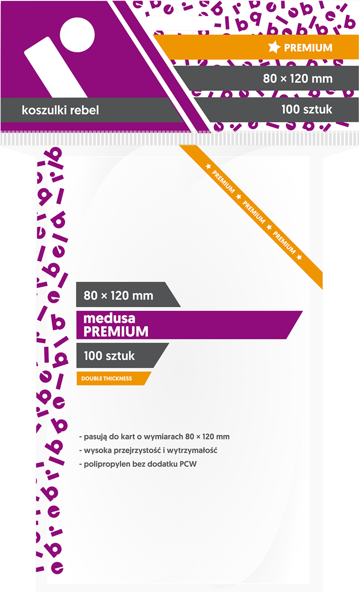 Wychodząc ku oczekiwaniom graczy prezentujemy koszulki na karty marki Rebel. Cechuje je: wysoka przejrzystość i wytrzymałość, bezbarwność - brak domieszek kolorystycznych (dzięki czemu nie zmieniają wyglądu grafik na kartach), wykonane z polipropylenu, bez domieszek polichlorku winylu (lepsza odporność na promieniowanie słoneczne i zwiększona elastyczność), brak absorpcji wody (chłonność po 24h zanurzenia na poziomie 0,03%), grubość premium - 90 mikronów, duża ilość w opakowaniu (100 sztuk) w atrakcyjnej cenie. Ten rozmiar koszulek pasuje między innymi do kart z gier: Seria Dixit, Abyss, Intryganci, CV, Maskarada, Megawojownicy. x