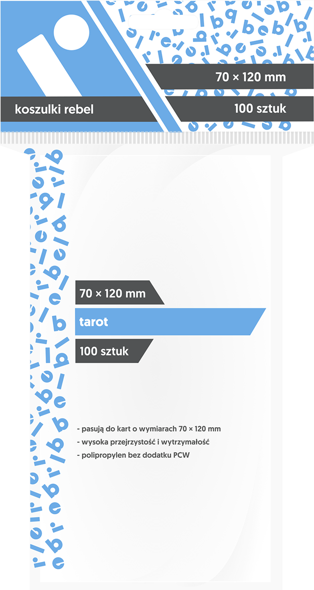Wychodząc ku oczekiwaniom graczy prezentujemy koszulki na karty marki Rebel. Cechuje je: wysoka przejrzystość i wytrzymałość, bezbarwność - brak domieszek kolorystycznych (dzięki czemu nie zmieniają wyglądu grafik na kartach), wykonane z polipropylenu, bez domieszek polichlorku winylu (lepsza odporność na promieniowanie słoneczne i zwiększona elastyczność), brak absorpcji wody (chłonność po 24h zanurzenia na poziomie 0,03%), grubość standard - 50 mikronów, duża ilość w opakowaniu (100 sztuk) w atrakcyjnej cenie. Ten rozmiar koszulek pasuje między innymi do kart z gier: T.I.M.E Stories, Blue Moon, Blood Rage. x