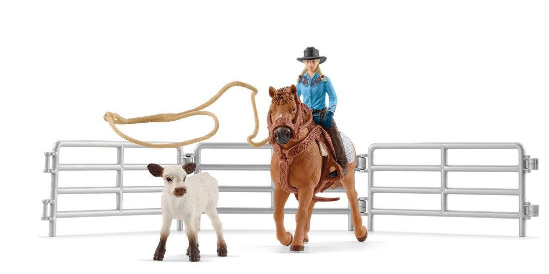 Opis produktuZasady bezpieczeństwaZestaw figurek Schleich z serii Farm World: Kowbojki i łapanie na lasso. x