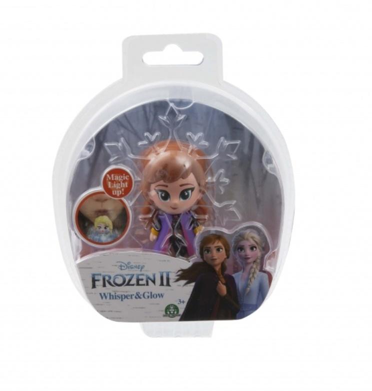 Szepnij i rozświetl! Laleczka nawiązująca do fabuły z filmu Kraina Lodu 2 z systemem RGB LED. Rozświetla się pod wpływem powietrza wdmuchiwanego do otworu w górnej części laleczki. Po ponownym wdmuchnięciu powietrza kolor światła się zmienia. Łącznie występuje 6 różnych iluminacji świetlnych. Opakowanie zawiera jedną laleczkę o wysokości 7 cm (załączone baterie) . Występuje 10 rodzajów laleczek.