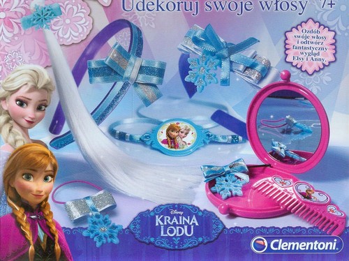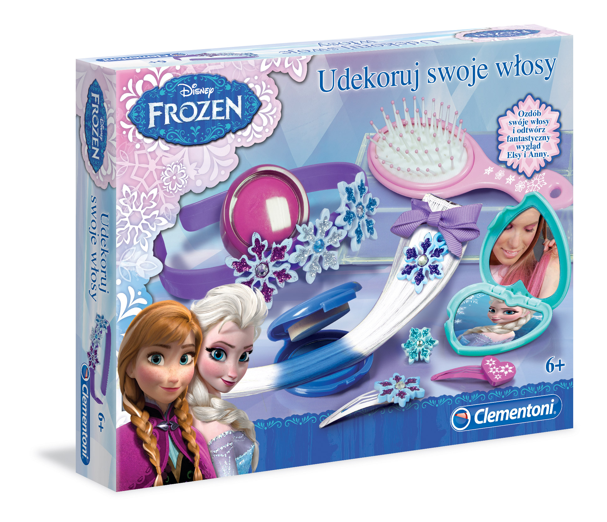 Za pomocą tego zestawy dziewczynki mogą tworzyć fryzury w stylu prawdziwej Księżniczki. Zestaw zawiera: treskę w kolorze lodu, łatwo zmywalną farbę do włosów, spersonalizowane naklejki i wiele akcesoriów, aby stworzyć total look utrzymany w stylu Frozen! Pobudza wyobraźnię i rozwija umiejętności manualne.