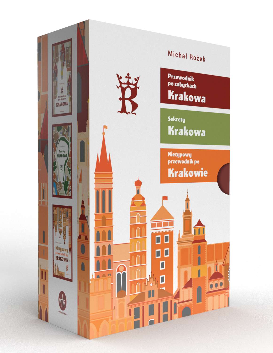 To najoryginalniejsza mapa Krakowa, jaka powstała. I jedyny przewodnik po Mieście Królów, jakiego potrzebujesz. Kraków to nie tylko monumentalne wawelskie mury, nastrojowe kawiarnie i tętniące życiem targowiska. W królewskim grodzie tajemnicę skrywa każda kamienica, nawet ta najbardziej niepozorna. Dokąd prowadzą tajemnicze drzwi przy ulicy Grodzkiej? Kto straszy w kościele Dominikanów? Czy słynny doktor Faust studiował magię na Uniwersytecie Jagiellońskim? Dawno zapomniane anegdoty i legendy zebrał i opowiedział wybitny znawca i historyk Krakowa – Michał Rożek. Z jego książkami każdy spacer po Krakowie zamienia się w przygodę! Box zawiera książki: Sekrety Krakowa, Przewodnik po zabytkach Krakowa, Nietypowy przewodnik po Krakowie.