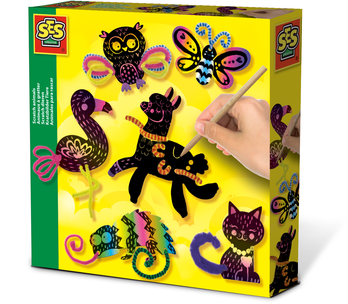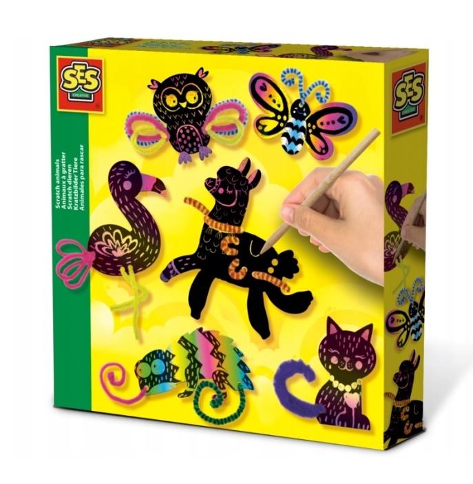 - zabawa w artystę - tworzenie własnych wzorów na obrazkach, - dobra zabawa również dla dorosłych, - wyprodukowany przez renomowaną, holenderską firmę SES Creative Zabawa jest bardzo prosta. Drewnianym dłutkiem odkrywasz tęczowe wzory i tworzych kolorowe zwierzątka. Dzięki dodatkom możesz zrobić im kolorowe ogonki, nóżki, wstążeczki. Zestaw zawiera: - 6 zdrapek w kształcie zwierzątek - drewniane dłutko do zdrapywania - kolorowe, miękkie druciki do ozdabiania, - instrukcję. x