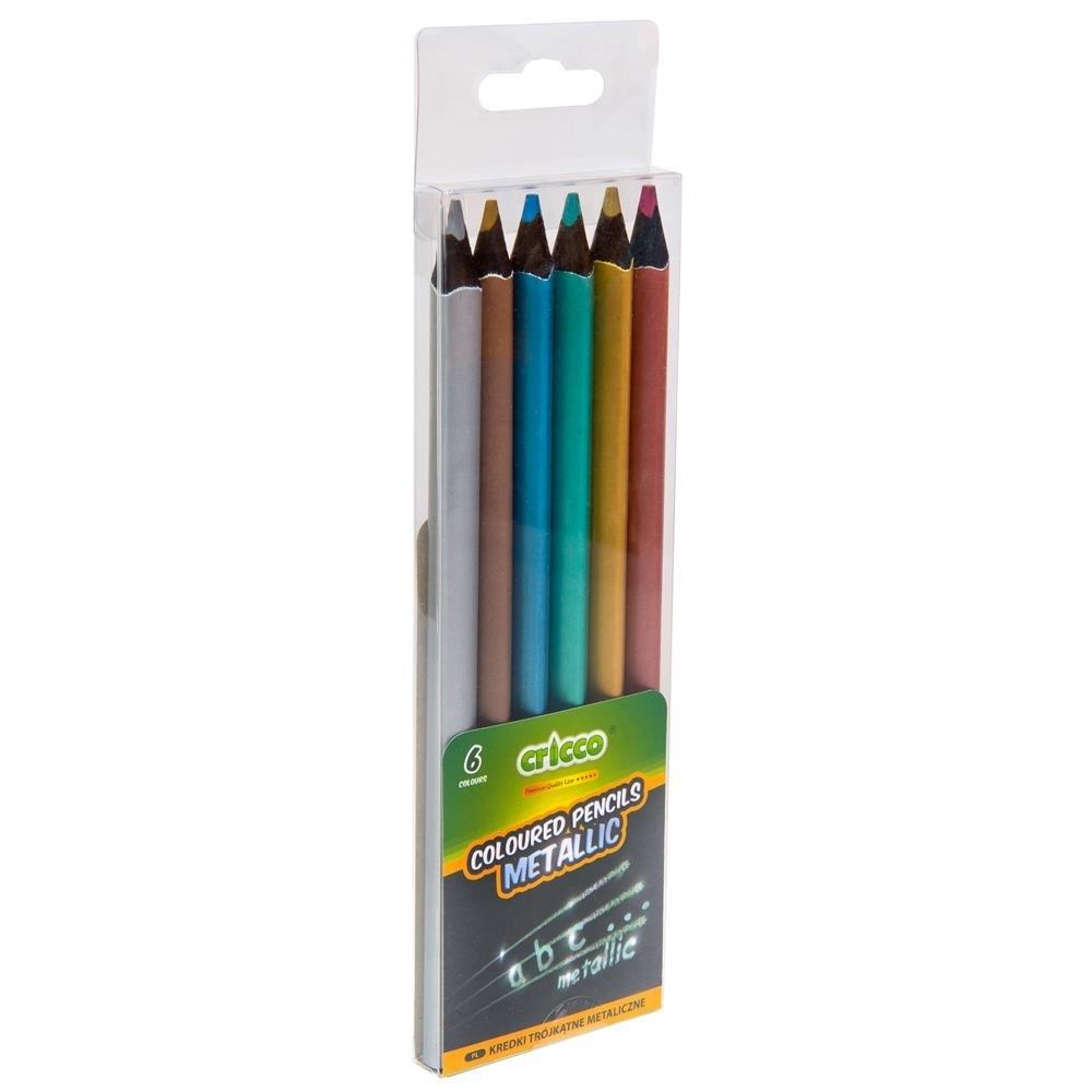 Kredki 6 kolorów CRICCO trójkątne jumbo metaliczne w etui