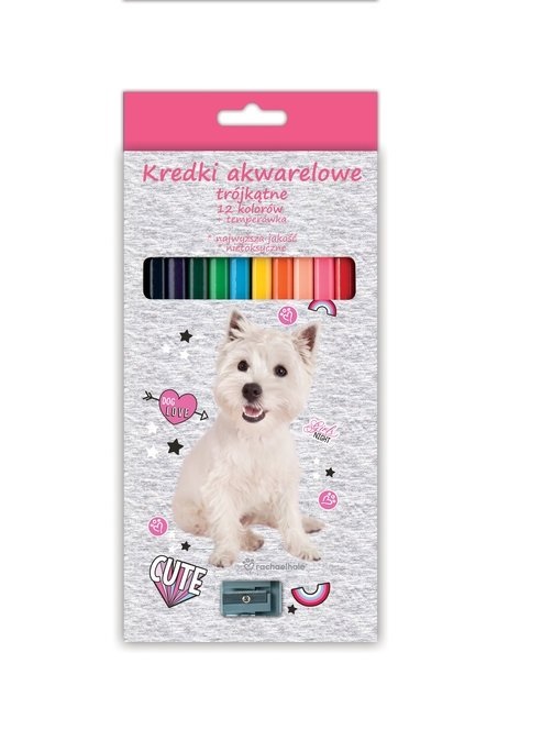 Kredki akwarelowe trójkątne 12 sztuk, temperówka w zestawie. Do stosowania na sucho i z wodą. Przy stosowaniu z woda dają efekt akwareli.
