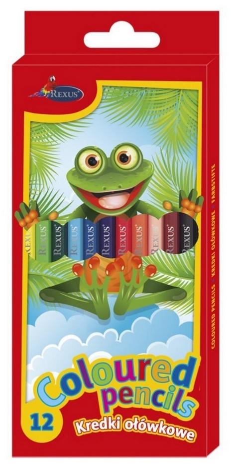 Kredki drewniane 12 kolorów, pakowane w tekturowe pudełko, 3 opakowania w zgrzewce.