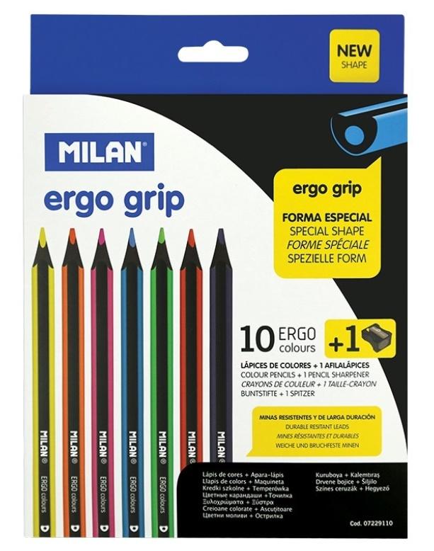 Kredki Milan ołówkowe Ergo 10 kolorów + temperówka