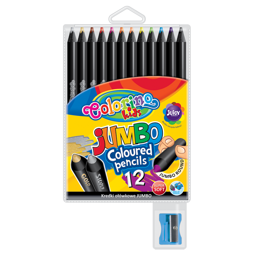 Kredki ołówkowe Colorino okrągłe Jumbo 12 kolorów + temperówka czarne