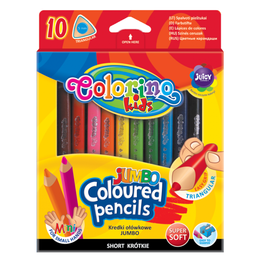 Kredki ołówkowe Colorino trójkątne Jumbo krótkie 10 kolorów