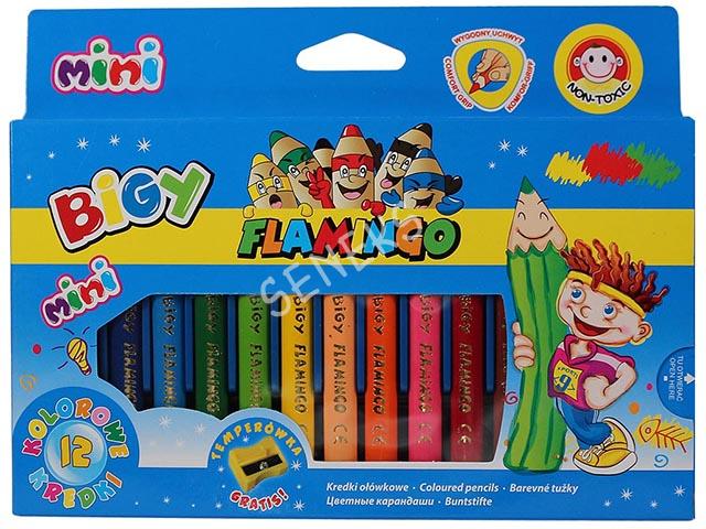 Kredki ołówkowe Flamingo Jumbo Mini 12 kolorów + temperówka