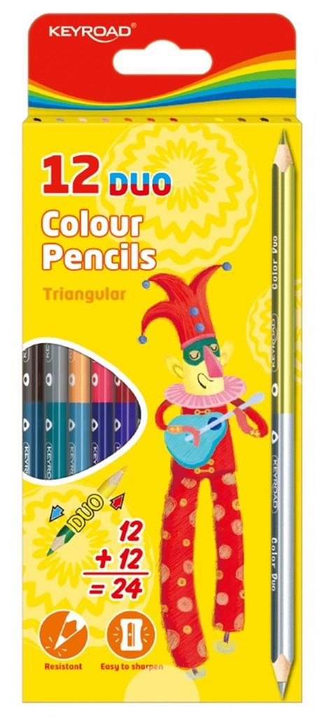 Kredki ołówkowe Keyroad trójkątne dwustronne 12 sztuk