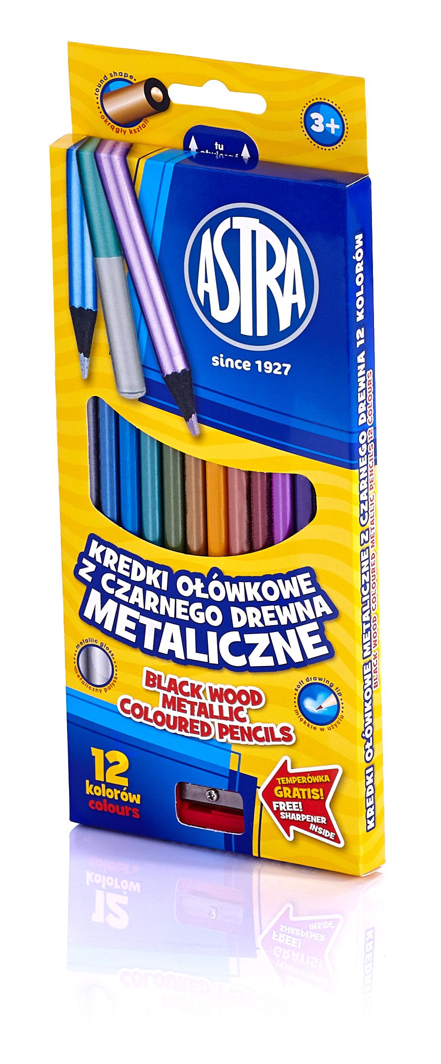 Kredki ołówkowe metaliczne czarne 12 kolorów ASTRA