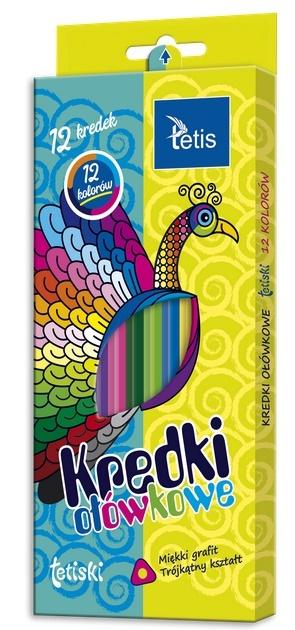 Kredki ołówkowe Tetis trójkątne 12 kolorów