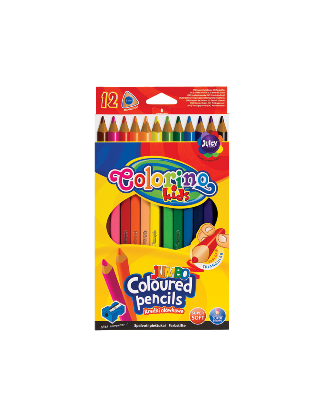 Kredki ołówkowe trójkątne 17,5 cm Jumbo 12 kolorów + temperówka